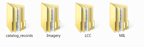 - Imagery: Raster data ready for use in a GIS. Organized by folders named with the originator of the imagery. This folder hierarchy includes licensed satellite imagery and historic aerial photographs that have been georeferenced by the Library or research partners.