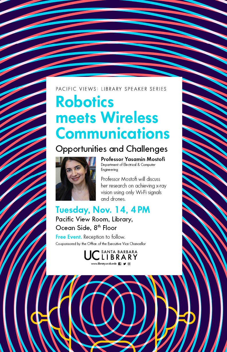 The 2017-2018 Pacific Views: Library Speaker Series kicks off with a talk by Professor Yasamin Mostofi (UCSB Department of Electrical & Computer Engineering) to be followed by a public reception.