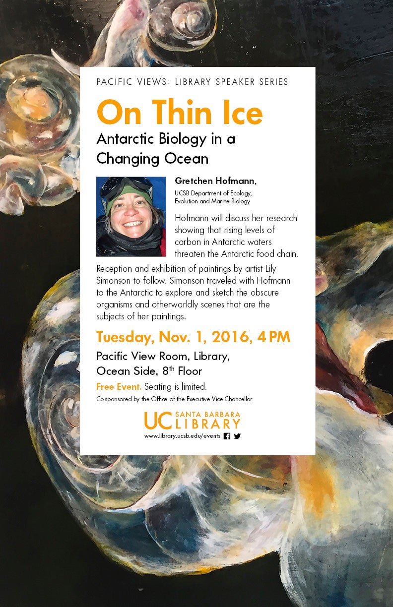 Hofmann will discuss her research showing that rising levels of carbon in Antarctic waters threaten the Antarctic food chain.